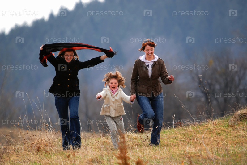 Две девушки и маленькая девочка на открытом воздухе