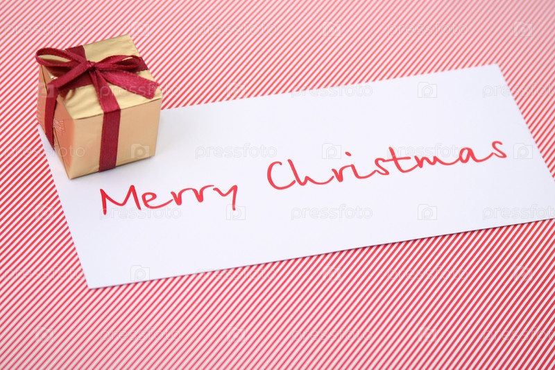 Подарочная коробка с пожеланием веселого рождества на красном фоне