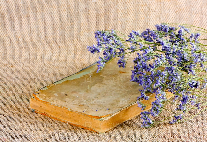 Винтажная книга и сухие сиреневые цветы