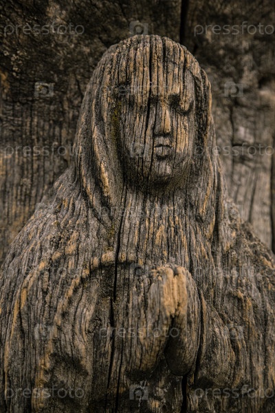 Дева Мария на древней деревянной иконе