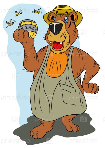 Веселый медведь с бочонком меда