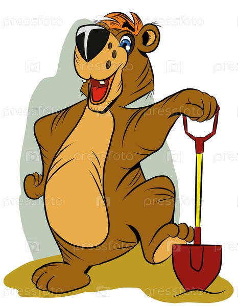 Веселый смешной медведь с лопатой