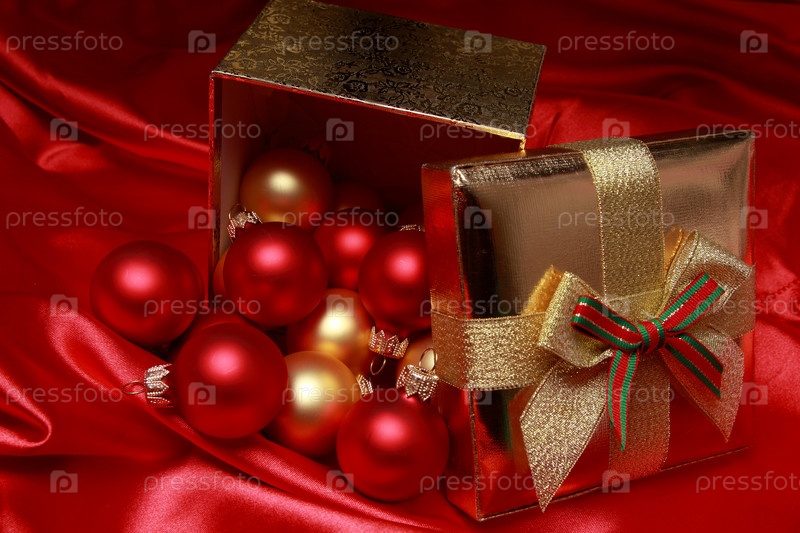 Подарочная коробка с шарами на Рождество