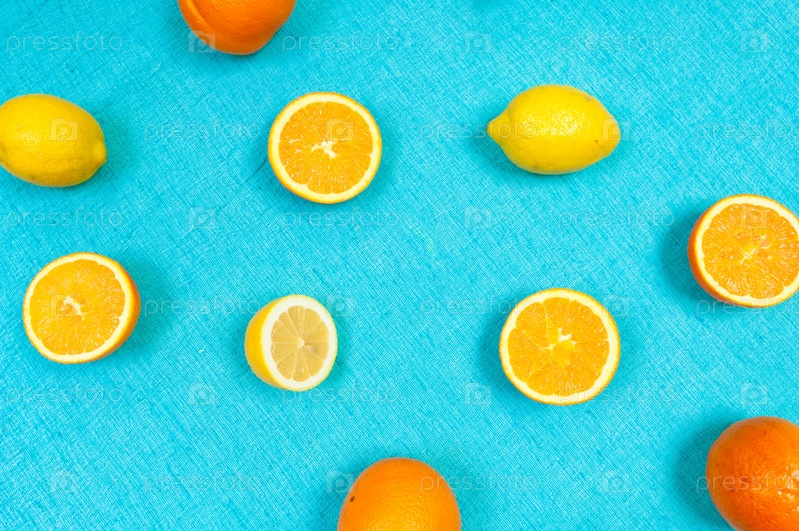 Цитрусовый узор на светло-синем фоне