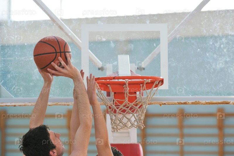 Игра в баскетбол в спортзале