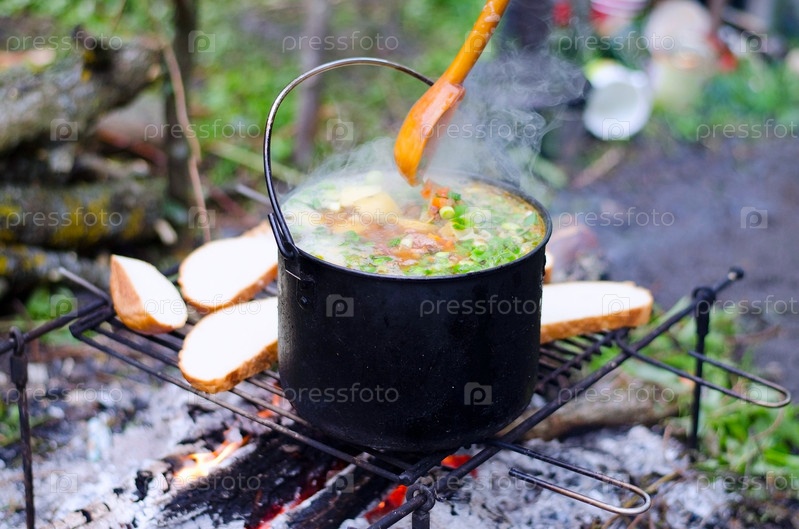 Приготовление супа на огне