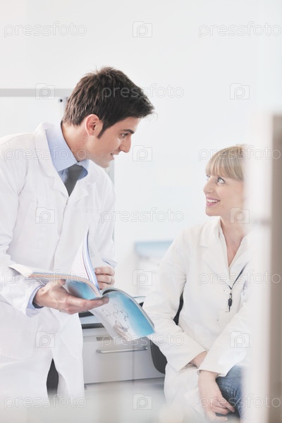 Двое медиков общаются в рабочем кабинете