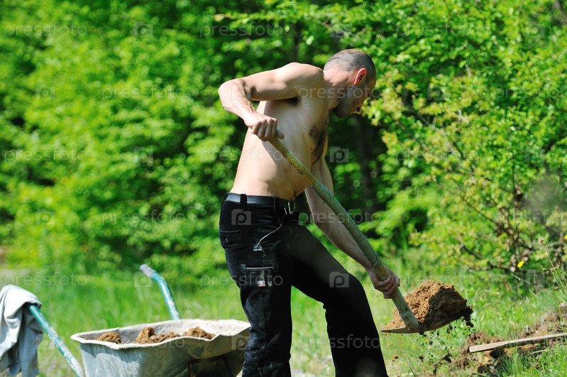 Мужчина работает в саду