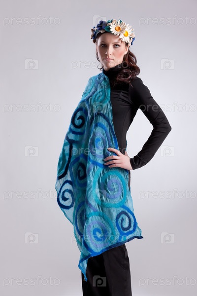 Молодая привлекательная женщина, одетая в модную ручную одежду на изолированном фоне