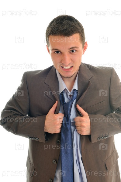 Портрет эмоционального делового мужчины на белом фоне