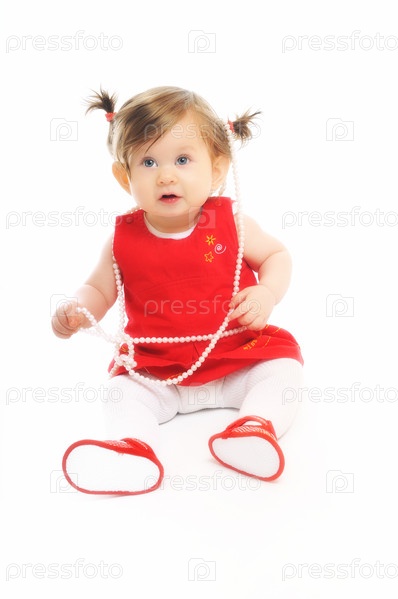 Портрет красивой маленькой девочки на белом фоне