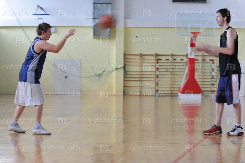 Игра в баскетбол в школьном спортивном зале