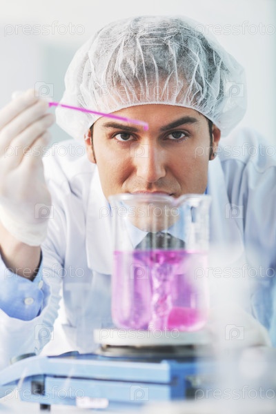 Молодой ученый делает опыты в лаборатории