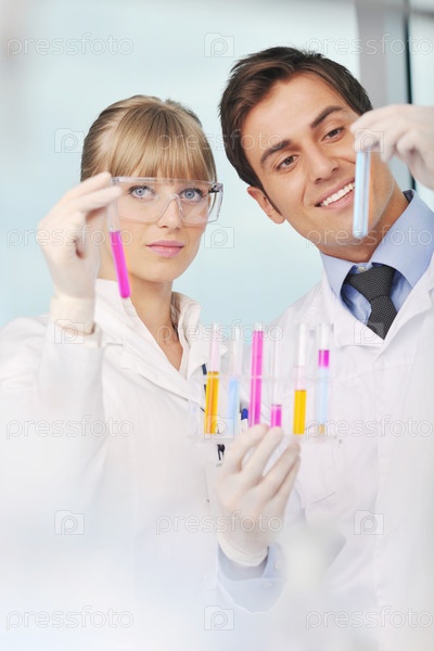 Молодые ученые проводят опыты в лаборатории