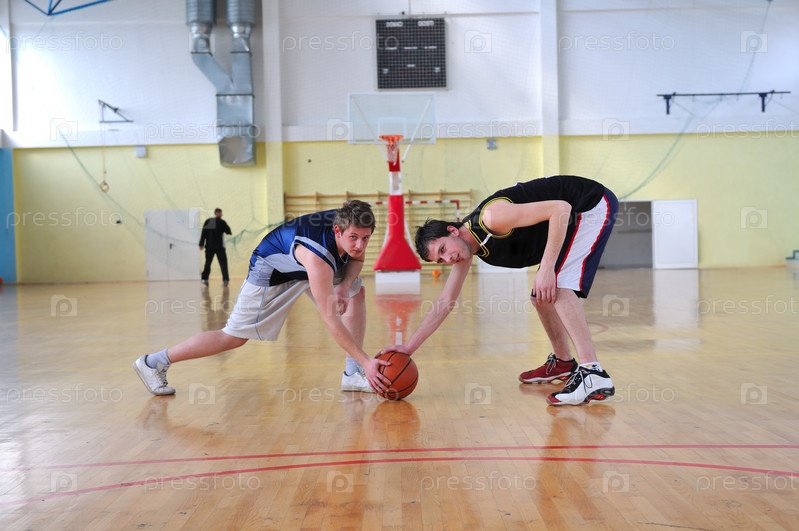 Два баскетболиста в спортзале