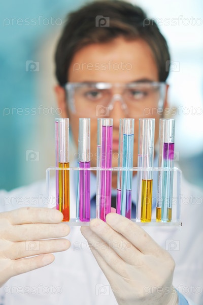 Молодой ученый работает в лаборатории