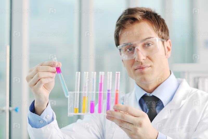 Ученый с пробирками в химической лаборатории