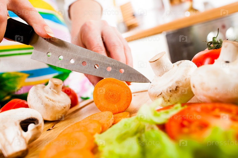 Женщина режет овощи