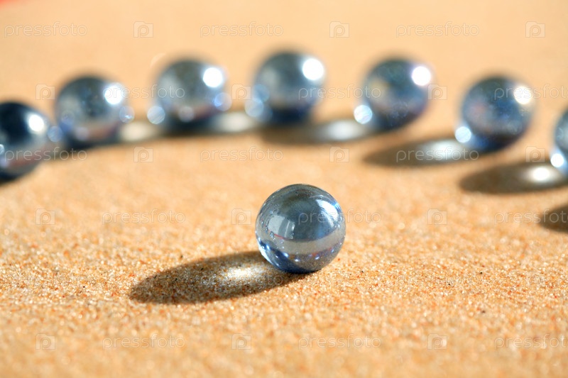 Стеклянные шарики на песчаной поверхности
