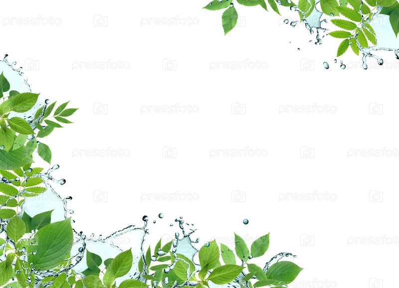 Границы рамки из зеленых листьев и брызг воды