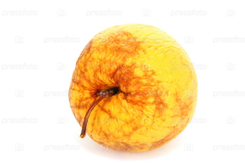 Старое желтого яблоко, изолировано на белом фоне