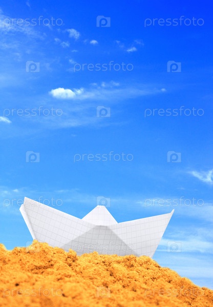 Бумажный кораблик на песке
