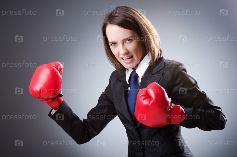 Деловая женщина в боксерских перчатках