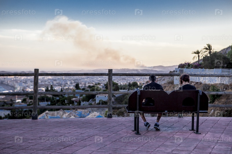 Молодая пара на скамейке