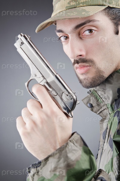 Солдат с пистолетом, студийный портрет