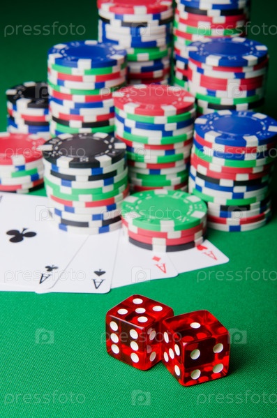 Игральные кости, карты и фишки казино