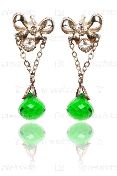 Серьги с зелеными камнями на белом фоне