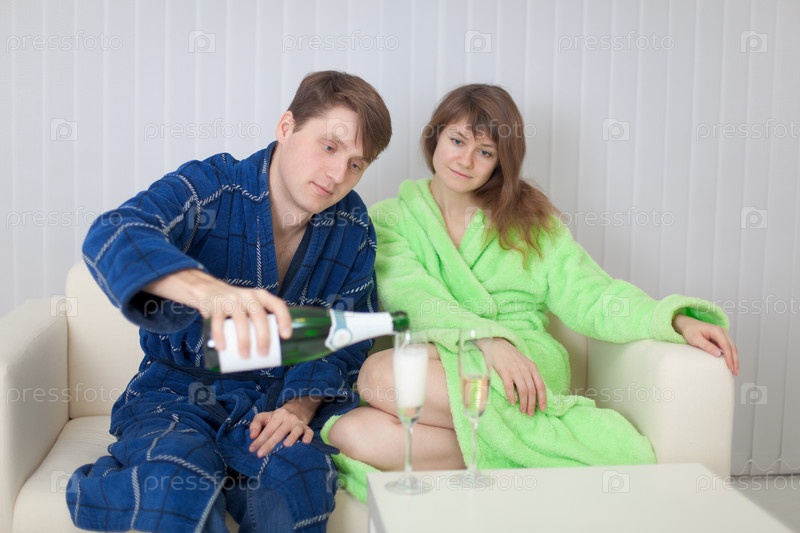 Мужчина наливает своей леди шампанское в стакан