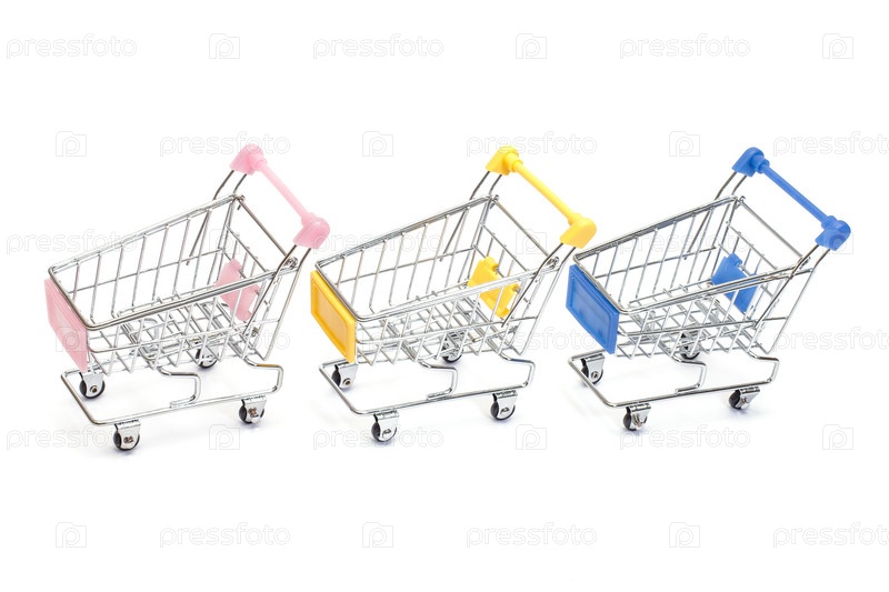 Тележки для покупок на белом фоне