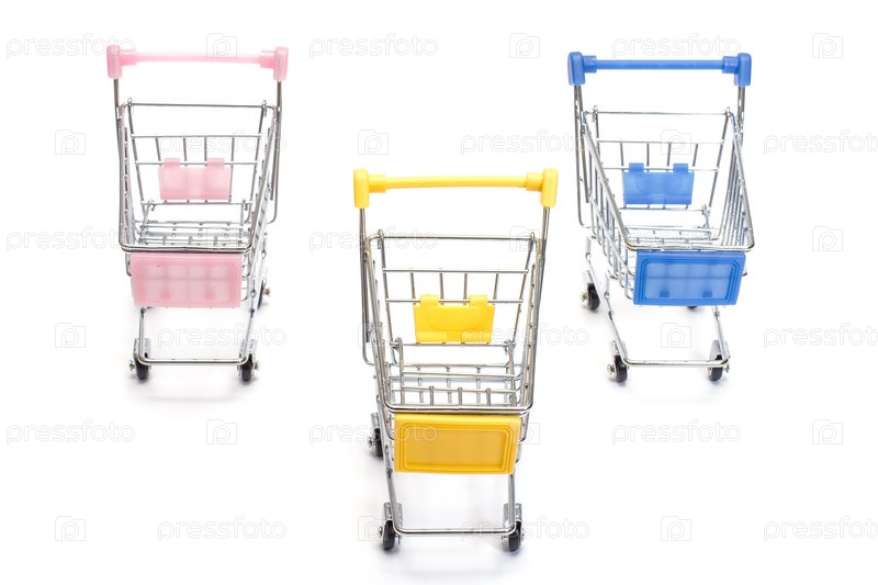 Тележки для покупок на белом фоне