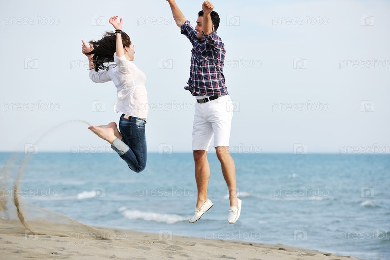 Красивая девушка в прыжке на берегу моря