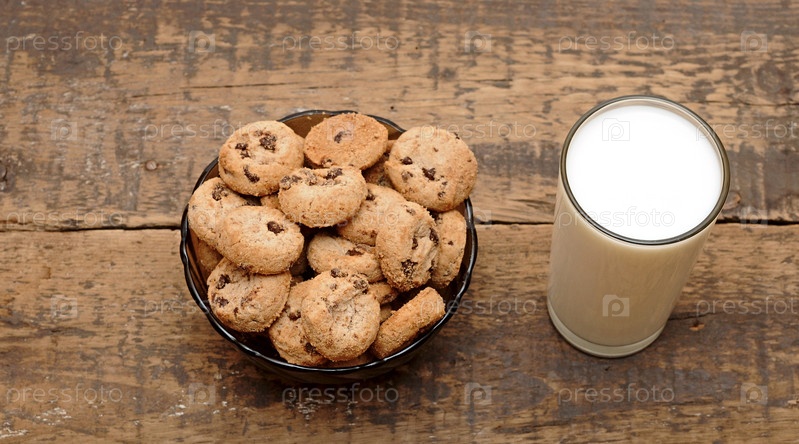 Стакан молока и печенье на деревянном столе