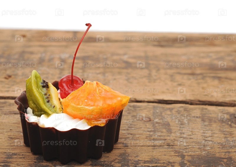 Десерт на деревянном столе
