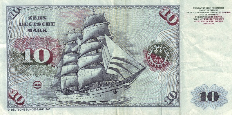 Банкнота в 10 немецких марок 1963 года с изображением судна Горх Фок II