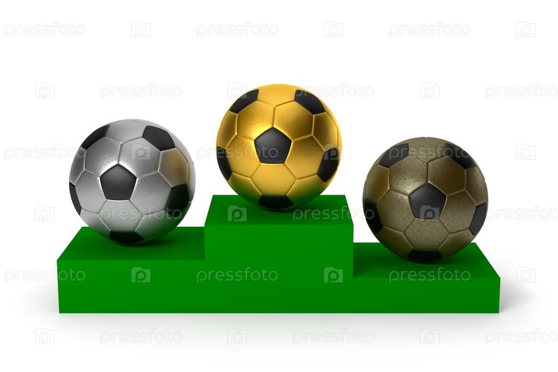 Три футбольных мяча на подиуме