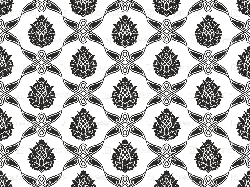Бесшовная дамасская цветочная черно-белая текстура