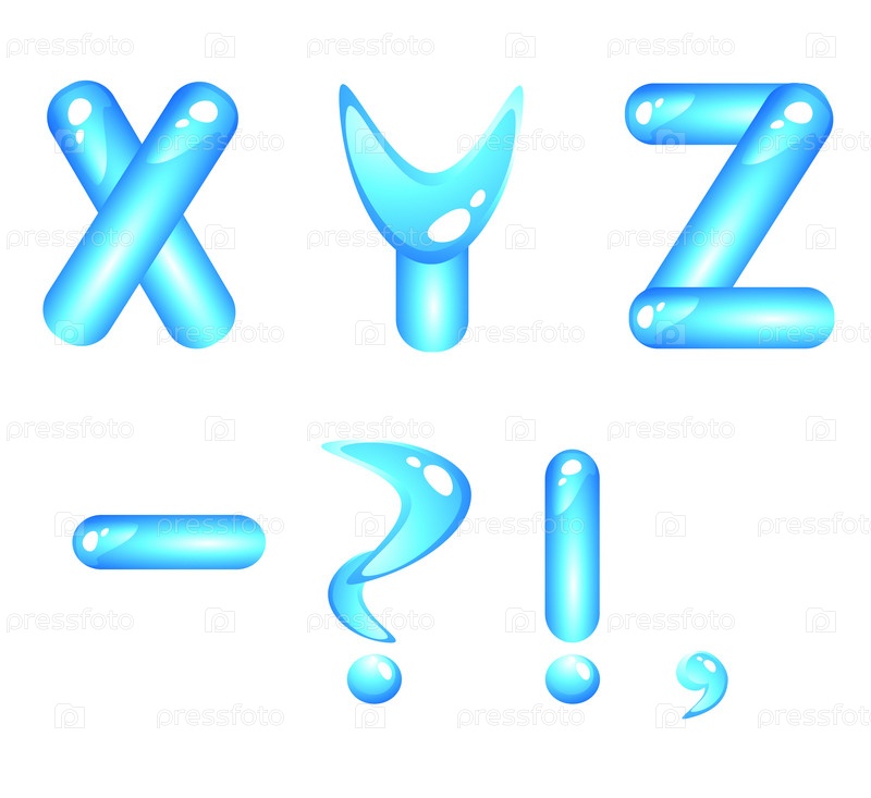 Голубой водный блестящий алфавит