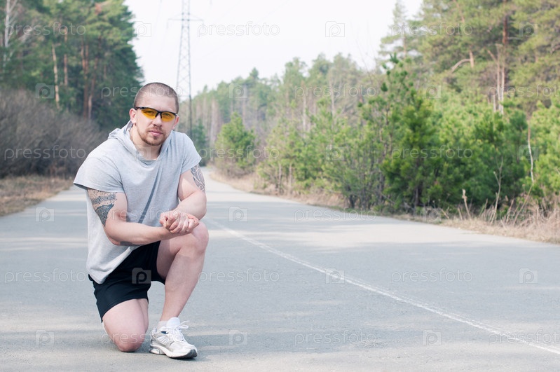Молодой спортсмен, отдыхающий во время пробежки