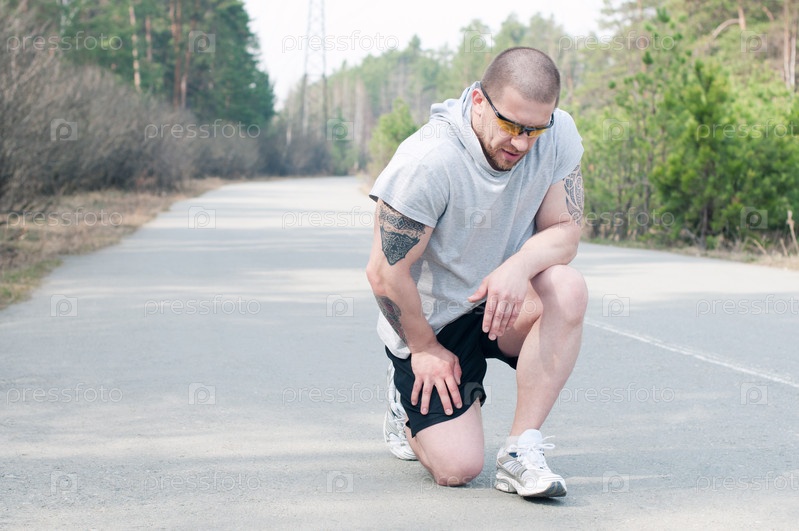 Портрет молодого спортсмена, отдыхающего во время пробежки