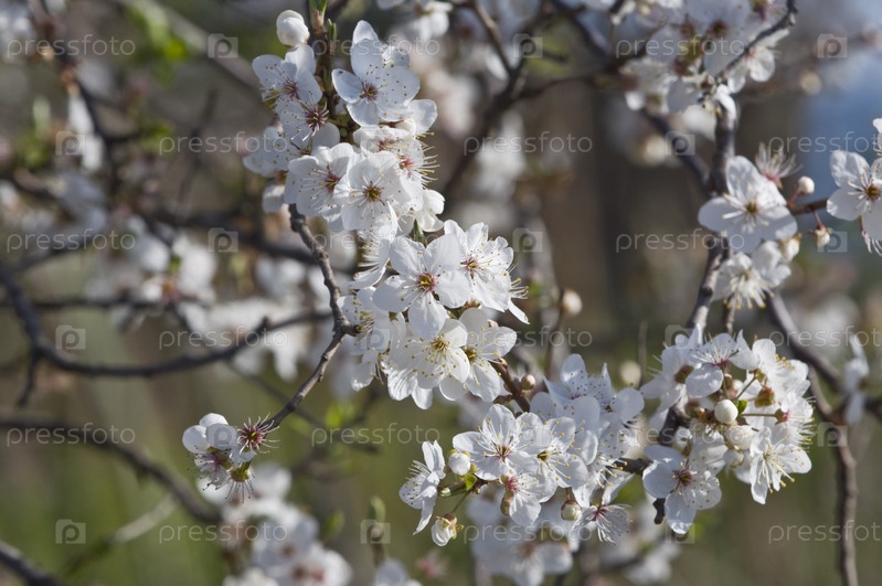 Цветы вишни крупным планом