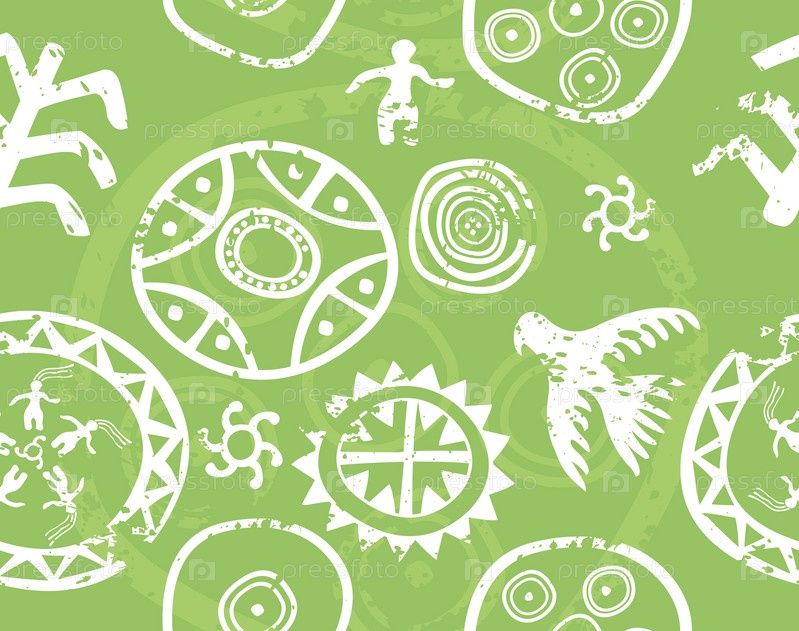 Зеленый фон с белыми символами, имитация древних наскальных рисунков (петроглифов)