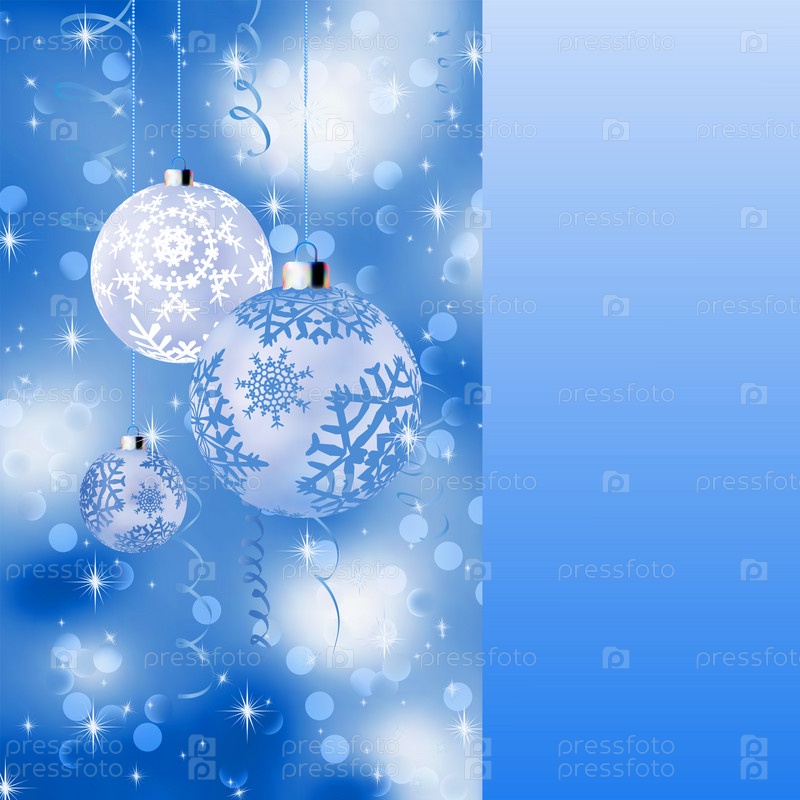 Голубая открытка с новогодними шарами
