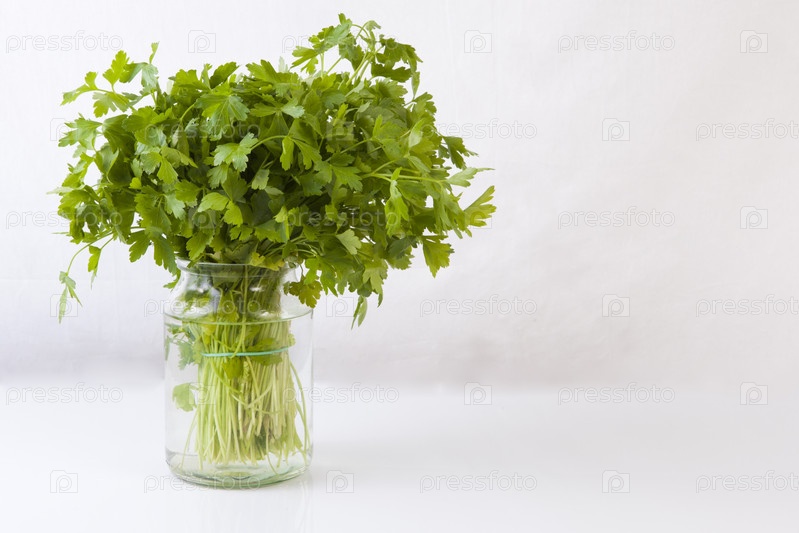 Стеклянная ваза со свежей петрушкой