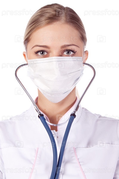 Портрет женщины-врача в маске