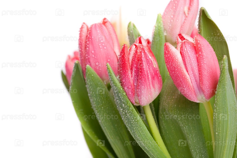 Розовые тюльпаны в мелких капельках воды