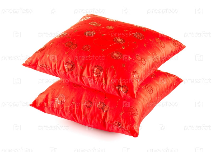 Две красные подушки на белом фоне
